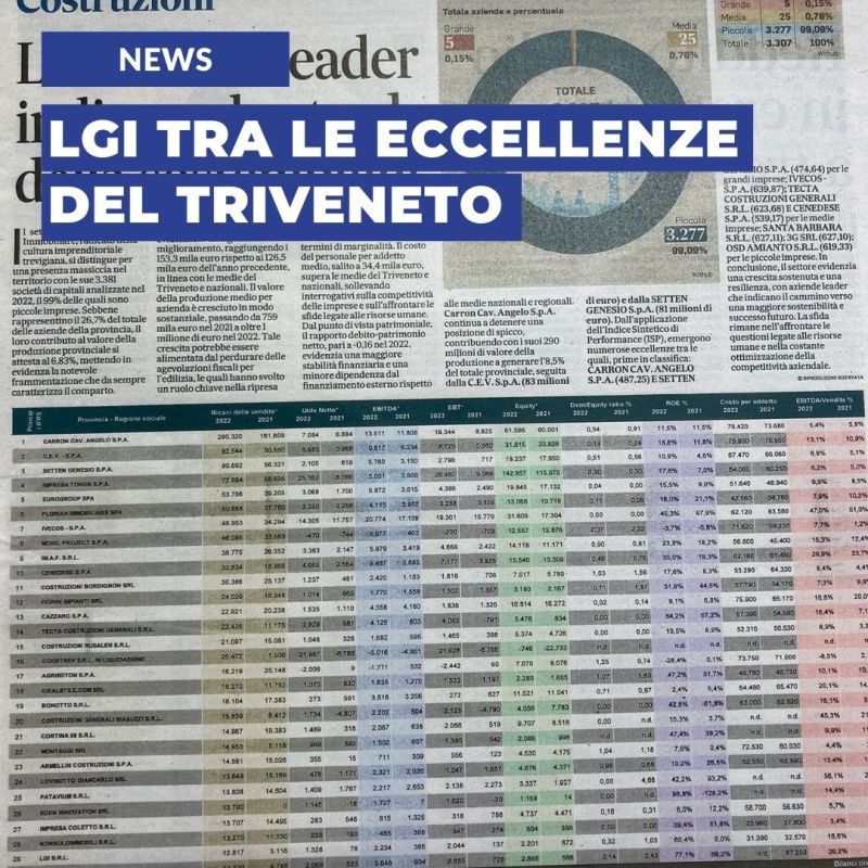 Grande orgoglio e soddisfazione per il nostro team! Siamo entusiasti di annunciare che LGI è stata recentemente inserita nella prestigiosa classifica delle eccellenze del Triveneto nel settore edilizia e costruzioni!