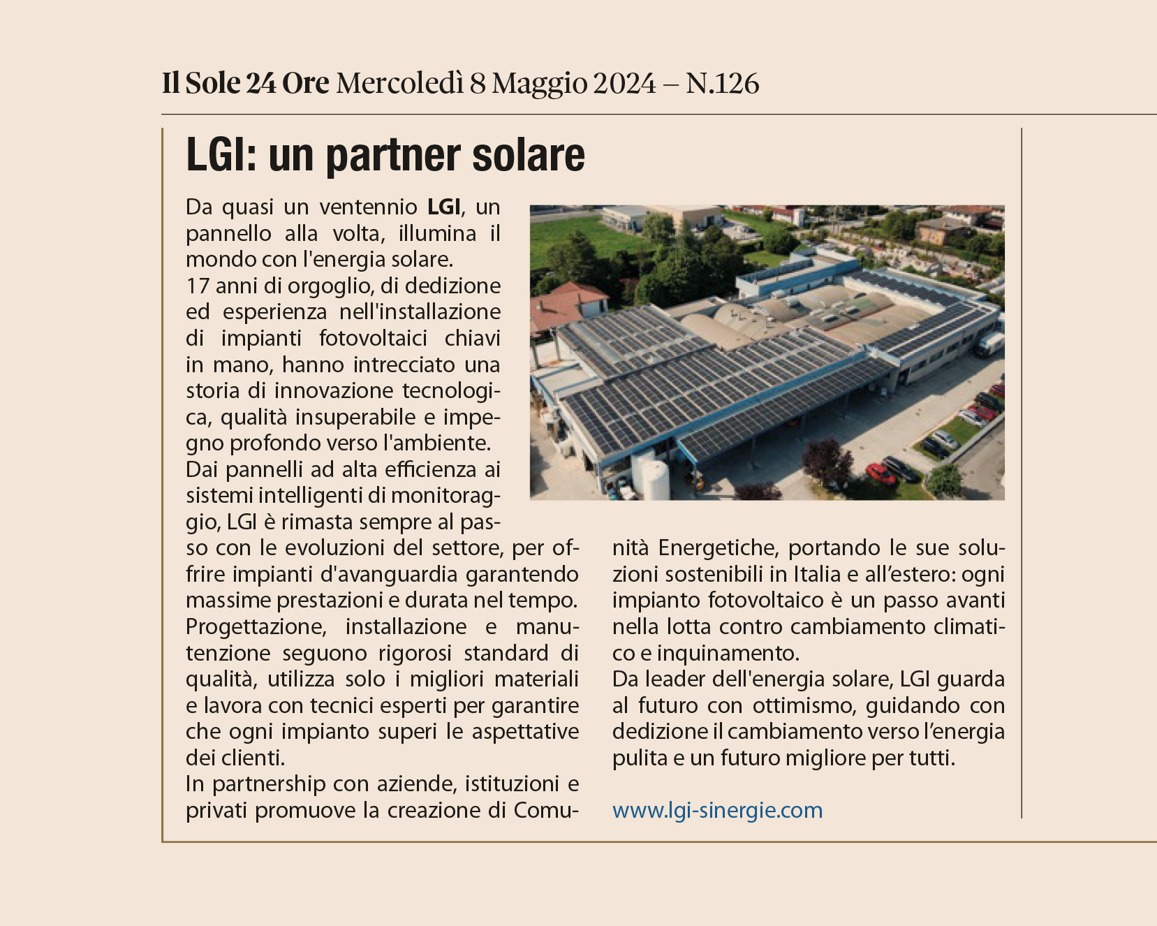 Da 17 anni, LGI installa impianti fotovoltaici all'avanguardia, promuovendo la sostenibilità e creando Comunità Energetiche in Italia e all'estero, con un impegno costante verso l'innovazione tecnologica e la lotta contro il cambiamento climatico.