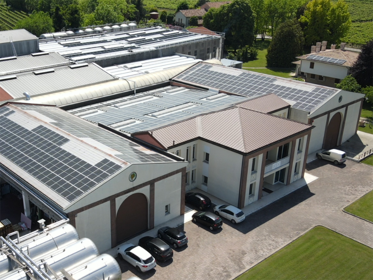 Dopo un'analisi energetica iniziale, abbiamo proposta la realizzazione per sopperire al 33% del fabbisogno dell'autoconsumo della cantina. Abbiamo realizzato quindi un impianto su tutta la superficie dell'edificio per una potenza totale di 430 kWp in media tensione.