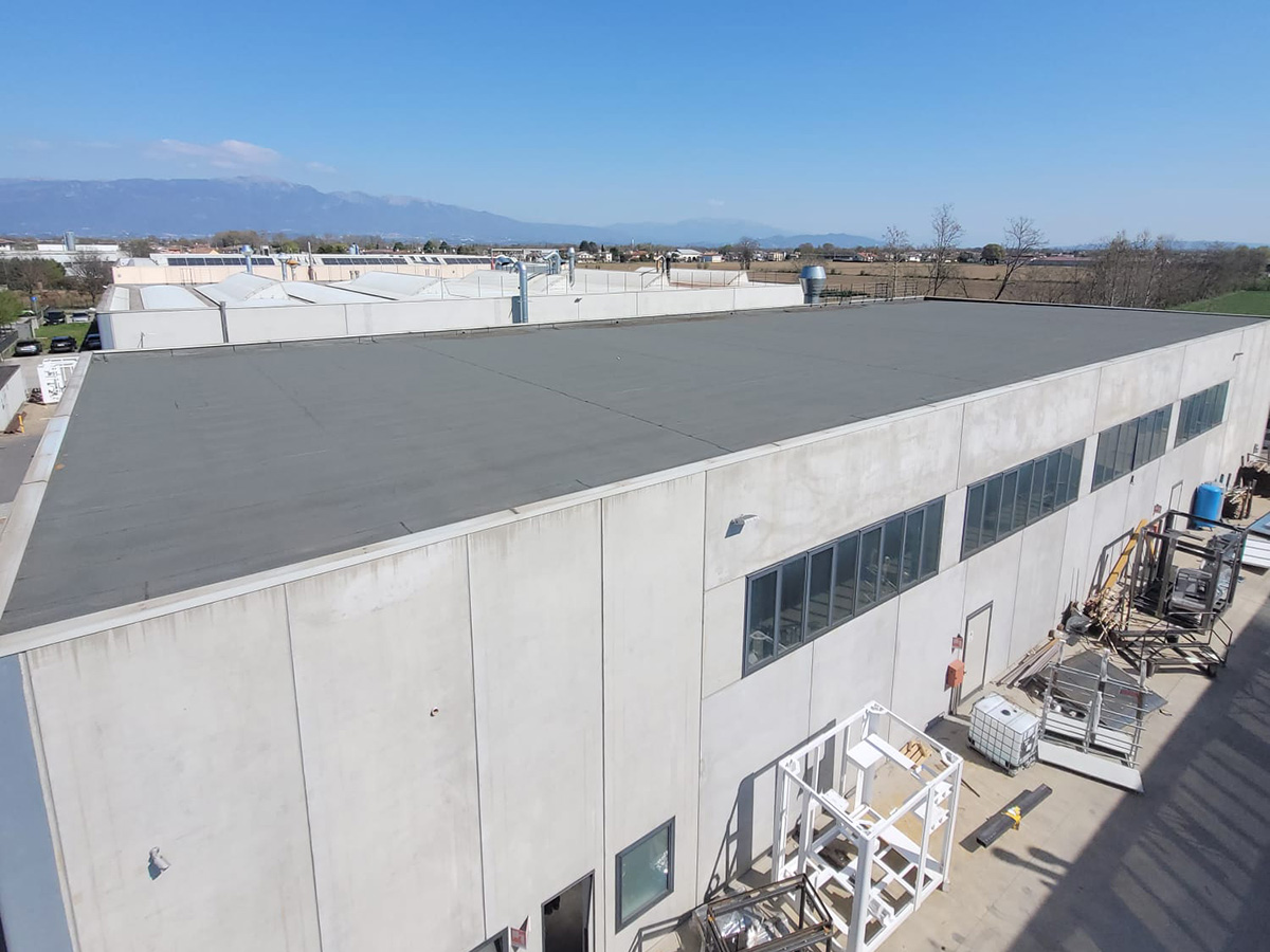 A seguito di rilievi, abbiamo realizzato il progetto esecutivo che ha portato a dimensionare la potenza di 499,97 kWp in media tensione, per andare a contrastare il consumo di oltre 740.000 kWh annui. L'esecuzione ha visto l'installazione di n.1286 moduli fotovoltaici da 380W monocristallini disposit su zavorre in cemento da 10°.